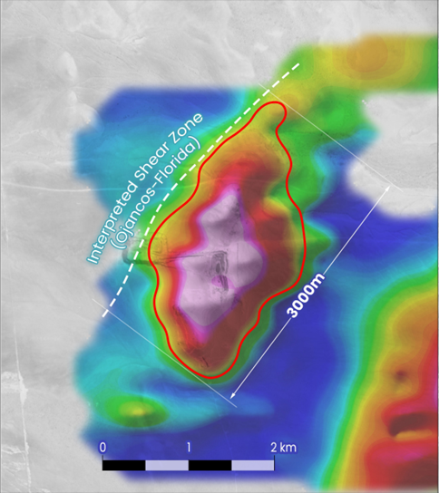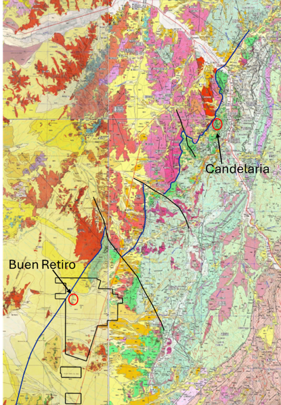 Work by Ptolemy confirms that Buen Retiro Project has many similarities to Candelaria in terms of geological setting, scale, and geophysical signature. Both Candelaria and Buen Retiro are located 1,500 m to east of the regional contact between intrusive and volcanic rocks (Figure 2). Both are located close to the northeast-southwest Ojancos-Florida shear zone which is a major regional structure (Figure 3). And both are hosted in the Punta del Cobre Formation (andesites and volcanoclastic rocks).