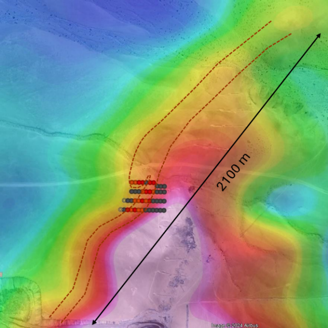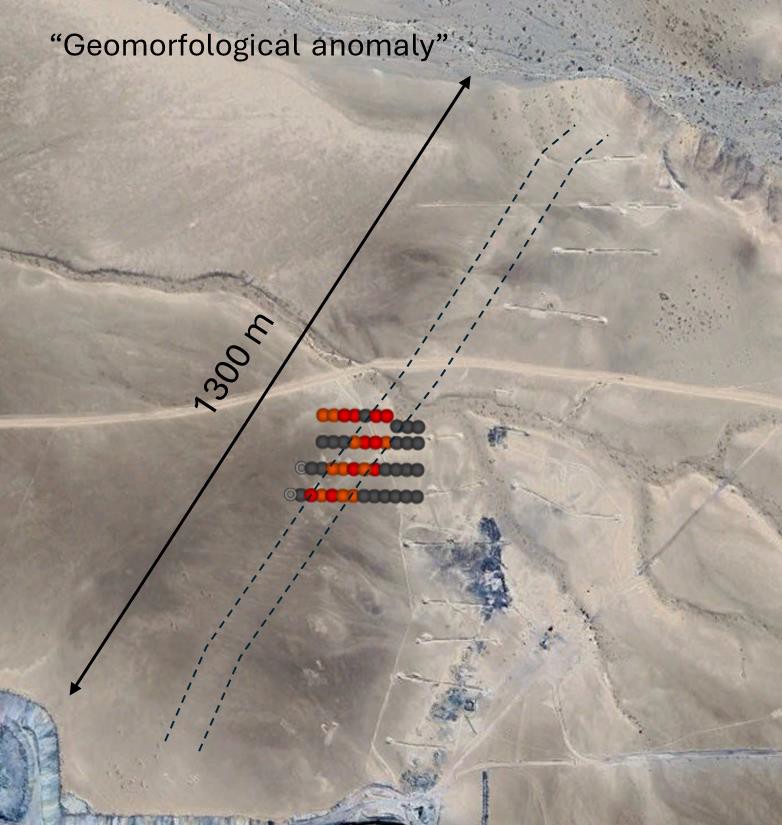 The targets in this northern portion are Candelaria-style, open-pittable, stratigraphic occurrences, both oxide and sulphide. In the central and southern zones, drilling intersections and geophysics highlight at least 2,700 m of strike-length of structure with the potential to host mineralisation.