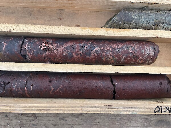 The depth to fresh rock at the Buen Retiro Project is over 100 m in zones of intense structural activity, especially to the south of the historical open pit. To the north, where mineralisation exhibits a stronger stratigraphic control and the intensity of faulting is less evident, the copper oxides extend down to a depth of approximately 60 metres. Native copper is frequently observed at the base of oxidation, reflecting supergene enrichment processes.